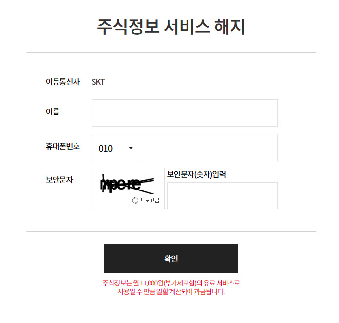 SKT PASS 주식정보 이용료 빠져나가시는 분들은 아래 주소에서 간편하게 즉시 해지가 가능합니다.