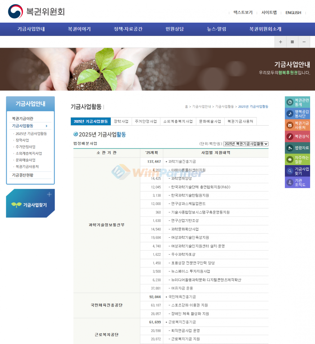 복권기금이 어디에 얼마나 사용되는건지 확인 가능합니다.